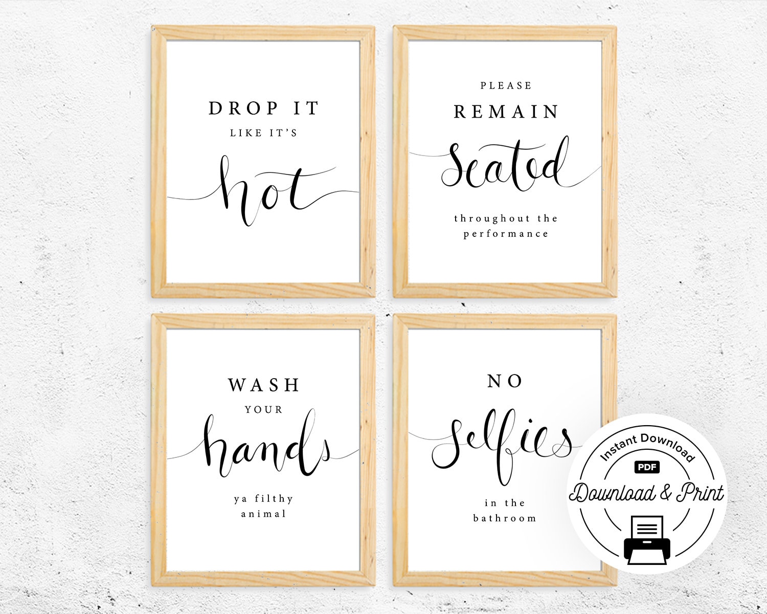 Funny Bathroom Signs Set Of 4 Instant Download Funny Etsy Uk
